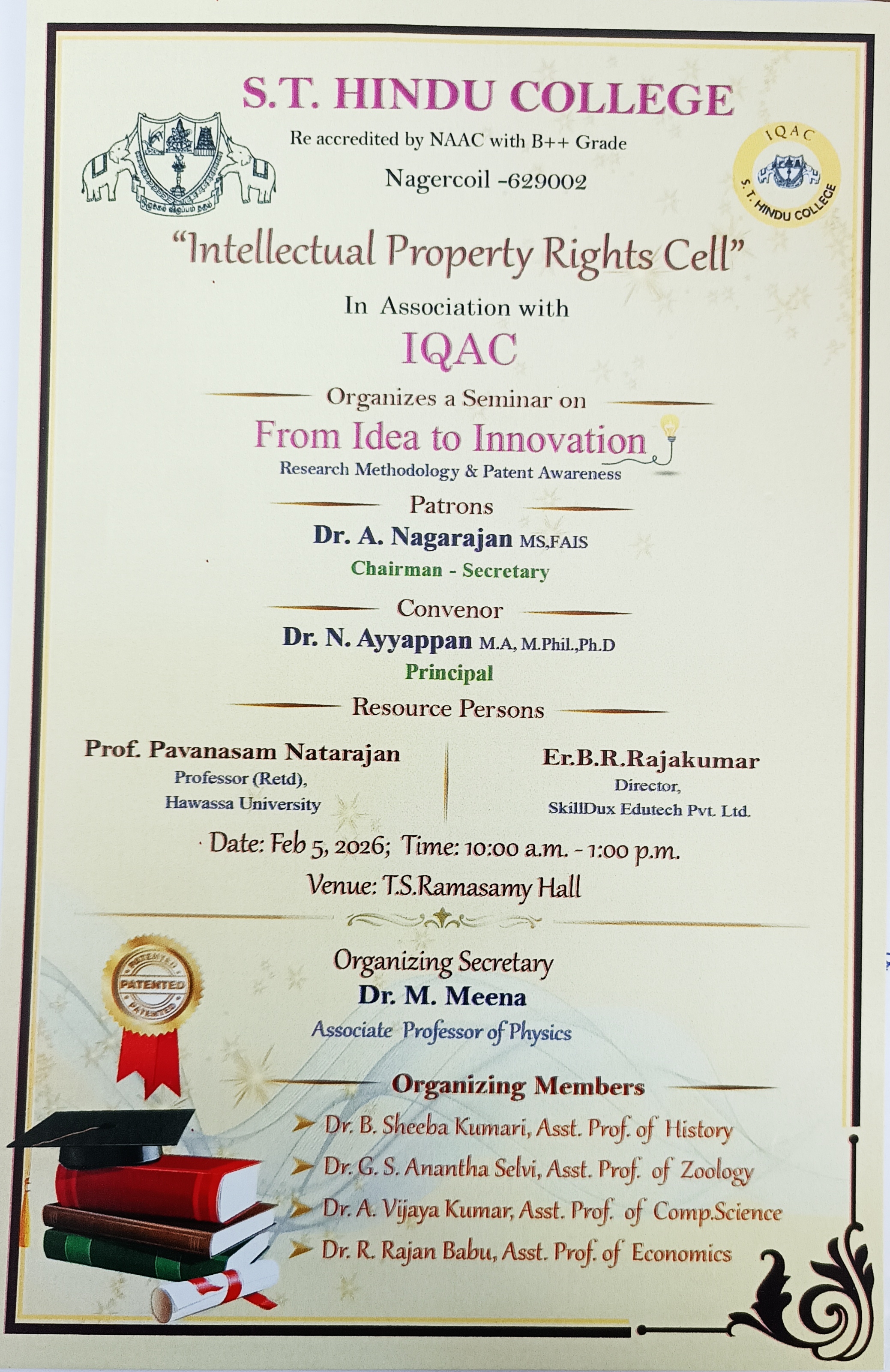 "Intellectual Property Rights Cell" in Association with IQAC Organizes a Seminar on "From Idea to Innovation" on 05.02.2026